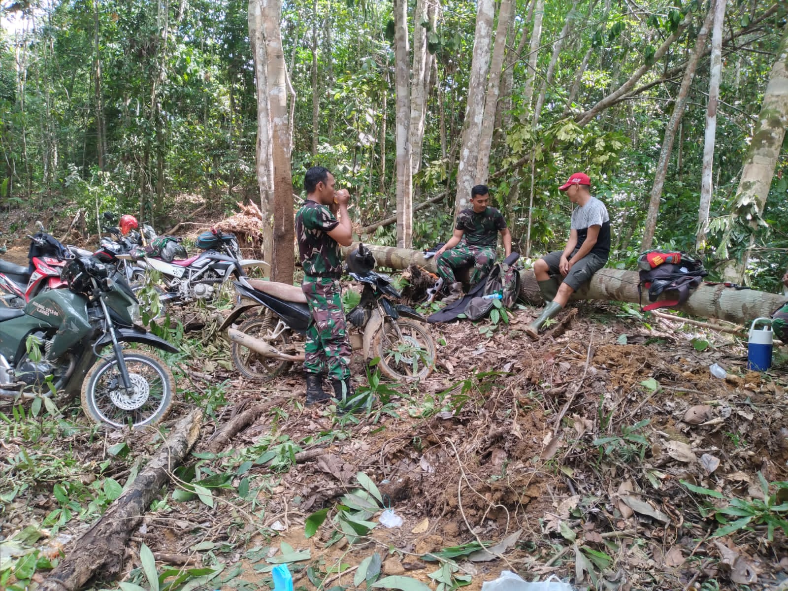 Suasana yang begitu harmonis dilakukan prajurit yang mengikuti Satgas TMMD wilayah Kodim 1013/Muara Teweh yang sedang beristirahat bersama masyarakat di lokasi TMMD pembukaan jalan.