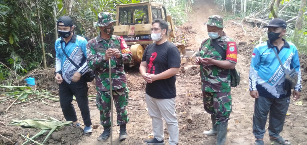Camat Lahei Barat Bapak Adi Suwarman meninjau sasaran pengerjaan pembuatan jalan yang masuk wilayahnya.