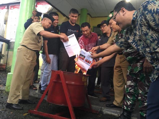 Rejang Lebong, ewarta.co - Sebanyak 2.631 lembar surat suara Pemilu 2019 yang tidak terpakai di Kabupaten Rejang Lebong dimusnahkan dengan cara dibakar dihalaman Kantor KPU Rejang Lebong, Selasa (16/4).