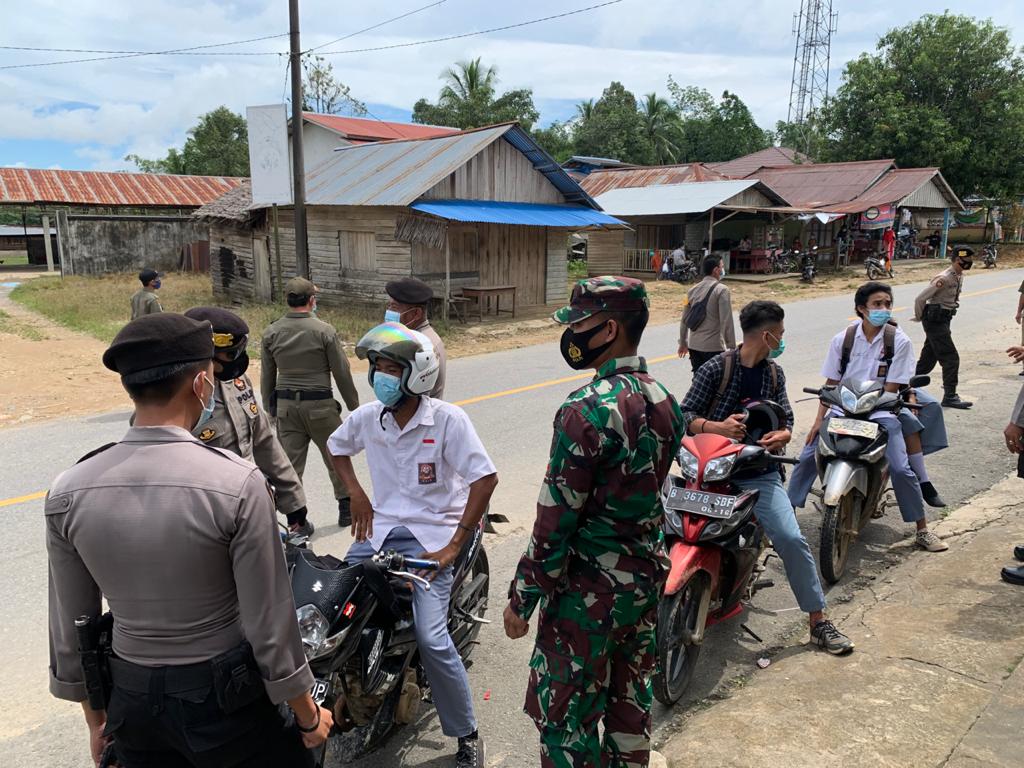 Mempawah - Anggota Koramil 1201-05 Toho bersama anggota Polsek melaksanakan operasi Yustisi pendisiplinan dalam rangka penegakan protokol Kesehatan di jalan raya Desa Sepang, Kecamatan Toho, Kabupaten Mempawah, Sabtu (12/6/2021).